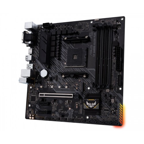 TUF Gaming A520M-Plus distils essential elements of the latest AMD platform and combines them with game-ready features and proven durability. Engineered with military-grade components, an upgraded power solution, and a comprehensive set of cooling options, this motherboard delivers rock-solid performance with unwavering gaming stability. When you build with a TUF Gaming motherboard, you also benefit from the TUF Gaming Alliance — an ASUS collaboration with trusted industry partners that ensures easier building, the best compatibility, and complementary aesthetics from components to case. With upgraded power delivery and comprehensive cooling options to fuel the latest AMD Ryzen CPUs, plus support for faster memory, TUF Gaming A520M-Plus is the perfect foundation for your next high-core-count battle rig. Certified military-grade TUF chokes deliver rock-steady power to the CPU, improving system stability. Proprietary capacitors provide up to 20% greater temperature tolerance and a 5X-longer lifespan. TUF Gaming motherboards are designed to be easy to set up and configure just the way you want — even for first-time builders. The TUF Gaming Alliance eco-system makes selecting compatible parts easy, while Armoury Crate software offers full control of system settings via a single dashboard. TUF Gaming motherboards give you everything you need to build your dream gaming rig without adding complexity. TUF Gaming Alliance is a collaboration between ASUS and trusted PC-component brands to ensure compatibility with a wide range of parts, such as PC cases, power supplies, CPU coolers, memory kits, and more. With more partnerships and components being added regularly, the TUF Gaming Alliance will continue to grow even stronger. TUF Gaming A520M-Plus provides a complete, high-performance gaming package with a long list of features to improve your experience, including ultrafast networking for smoother online gameplay and onboard RGB lighting that syncs with attached accessories to help you create a personalized gaming atmosphere. Experience ultra-fast gaming with the ASUS-exclusive Realtek L8200A Gigabit Ethernet. With performance and stability enhancements, the LAN is optimized for CPU-efficient, low-latency data transfers. Turbo LAN is a network-optimization software for customizable packet prioritization. With cFosSpeed traffic-shaping technology, allows you to configure application priority via an intuitive interface and reduces network lag.