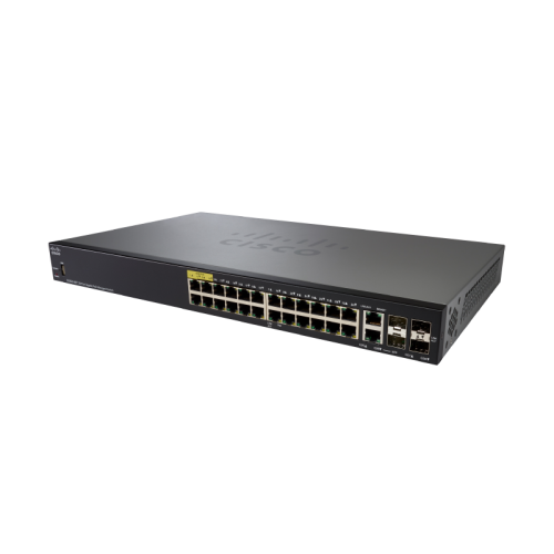 Cisco SG350-28P is one kind of 28-Port Gigabit PoE Managed Switch. This Cisco Managed Switch Discovery Protocol discovers Cisco devices, so that it allows devices to share critical configuration information, simplifying network setup and integration. In this Gigabit PoE Managed Switch, the Simple Network Management Protocol allows you to set up and manage your switches and other Cisco devices also remotely from a network management station. This Managed Switch delivers High performance, It Secure desktop connectivity helps to speed file transfers and data processing, improve network uptime, and you can keep your employees connected and productive. It support for advanced technologies, that ensure easy integration and full compatibility with IP telephony and other unified communications. This Managed Switch Provides more ports per Gigabit Ethernet switch than traditional switch models, giving you more flexibility to connect and empower your business. It comes with Advanced layer 3 traffic management, that provides static LAN Layer 3 routing, to segment your network into workgroups and communicate across VLANs without degrading performance. The Cisco SG350-28P Gigabit PoE Managed Switch has 1 Year Warranty.