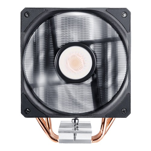 Cooler Master Hyper 212 EVO V2 is redesigned with an Asymmetrical tilt to guarantee RAM Clearance, along with revised brackets to assure the ease of installation. It is also paired with Cooler Masters' new SickleFlow 120 fan to improve cooling and acoustic performances. The asymmetrical heat pipe design ensures RAM compatibility and clearance space. Low heatsinks for better chassis clearance. Positioned in a 45-degree angle and surrounding the heatpipe, each fin-blade features X-shaped vents that create areas of high and low air pressure, resulting in several controlled vortices. These small and chaotic turbulences produce strong gusts that reduce overall airflow but improve airflow where it matters the most - next to the heatpipes. 4 heatpipes with Direct Contact Technology creates a sleek contact surface area for maximize heat dissipation. Newly Optimized blade design with updated curve that provides best balance between airflow and static pressure to take the heat away while remain extremely silence. Low vibrations and quiet fan allows for nearly inaudible levels. More than 10% decreased of fan noise level from previous model. Tool-free mounting system ensures hassle-free installation. Universal retention brackets are compatible with latest Intel and AMD socket CPU.