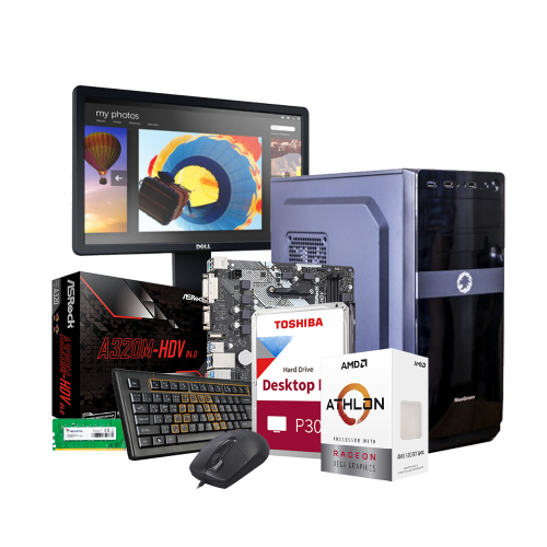 The Exclusive PC AMD Athlon 3000G PC comes with AMD Athlon 3000G Processor with Radeon Graphics, GIGABYTE AMD A320M-S2H MOTHERBOARD-AMD, Team Elite Plus 4GB 2400MHz DDR4 RAM, Toshiba P300 1TB Desktop PC Internal Hard Drive, MaxGreen 2809BK Casing, A4tech OP 730D 2X Click USB Optical Mouse, A4tech KR85 USB Keyboard With Bangla Black. This Exclusive PC AMD Athlon 3000G has 03 years Limited Warranty.