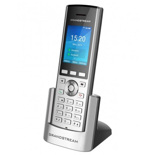 Grandstream WP820 is a portable IP Phonephone comes with 2 SIP accounts, 2-line keys, HD voice & dual MIC design with AEC and Noise Shield Technology, Accelerometer and configurable button for push-to-talk and other related functions. This powerful, portable WiFi phone comes equipped with integrated dual-band 802.11a/b/g/n WiFi support, advanced antenna design and roaming support, and integrated Bluetooth for pairing with headsets and mobile devices. By adding 7.5 hour talk time and HD voice with dual-MICs, the WP820 offers a powerful combination of features, mobility and durability to suit all portable telephony needs. The GMC08, a battery charging pack for the WP820 that can charge up to 8 batteries at a time, is available seperately.