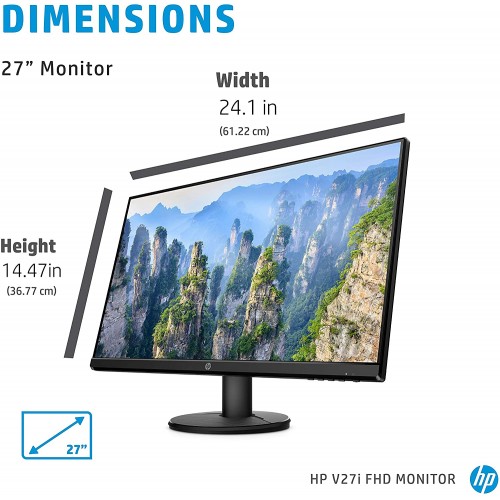 HP V27i Full HD Monitor comes with 27" FHD (1920x1080) IPS,1080p Display, 5ms GtG Response Time, 16:9 Aspect Ratio, 5 Degree Forward or 20-degree backward tilt, Share The Panoramic View, Low Blue Light, Response Time: 5ms. This monitor is featured with Input voltage 100 to 240 VAC, 32 W (maximum), 28 W (typical), 0.5 W (standby) Power Consumption, -5 to +20° Tilt. Here, 1 x HDMI 1.4 (with HDCP support), Low Blue Light and 1 x VGA are availble. Here, Using the Low Blue Light mode that subtly shifts your display's colours to a warmer spectrum, while making whites more natural and putting less strain on your eyes. You can adjust the screen to your personal preference with a 5-degree forward or 20-degree backward tilt. This new HP V27i FHD Monitor has 03 years warranty.