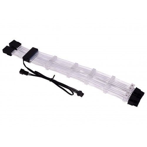 The Lian Li Strimer RGB 24 Pin Cable is fully customisation to your every desire. The pin cable also has the ARGB feature to link it to your motherboard and control it to your desire. The Cable has a huge array of RGB lighting variant available of you. The lights are bright and has all the colors that you want. The total thickness of the cable is 1.5 cm and it has a dual layers where one of the layer shows off the RGB lighting and the other transfers the power to the motherboard from the PSU. The Cable has also added the light controller that can control the lights of the cable and also the cable lighting can be managed by the motherboard. The cable has 12 Fine Optic Fiber Lines that control the RGB lights and shows off the colors and makes your PC look Magnificent.