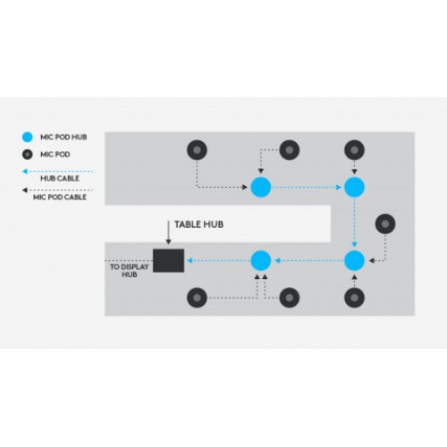 Logitech Rally Mic Pod HUB is compatible for Rally System Customize Microphone Placement. It is Customize microphone placement for most any conference table configuration. This HUB provides flexible placement options for multiple mic pods, Reduces cross-table cabling and Connects both mic pods and additional hubs. The Rally Mic Pod Hubs provide installers with the flexibility to customise microphone placement on virtually any conference table and three connections that support any combination of mic pods or additional hubs. Under-table mounting hardware helps conceal cables for a clean look and an alternative to daisy-chaining mic pods to one another. It eliminate the back-and-forth cabling on U-shaped or asymmetrical conference tables and add placement flexibility. With three connections for an array of mic pods, Rally Mic Pod Hub cleans up cabling, and you can place mic pods within easy reach of meeting room participants. Eliminate cross-table cabling between mic pods by connecting them through grommets to hubs beneath the table. This keeps audio cabling out of sight for a professional appearance. By using this Rally Mic Pod Hub you can connect each mic pod via a single cable. Unlike systems that require fixed mic positions, Rally automatically recalibrates the RightSound Mic Matrix 125 times per second for consistent echo cancellation, noise suppression, and beamforming performance. This latest Logitech Rally Mic Pod HUB comes with 02 years warranty.