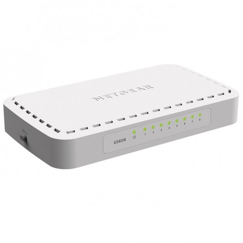 The Netgear GS608 8-Port Gigabit Desktop Switch is a high-speed network on a small scale, nothing delivers like this stylish powerhouse. This fast, easy, and affordable Gigabit switch gives your home network the maximum capacity to handle huge bandwidth. Packed with ease-of-use features to simplify your networking experience, its sleek design makes it look great on a desktop. The GS608 moves very large files such as high-end multimedia, gaming, Internet access, and other speed-intensive applications across your network instantly, and because it is standards-based, it painlessly integrates existing 10, 100, and 1000 Mbps devices on your network. The fan-less design results in silent operation allowing you to focus on your game or relax to your music. Matched with NETGEAR's thorough testing, the Netgear GS608 Switches provide long-lasting performance you can count on.