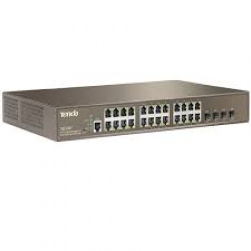 Tenda TEG3224P, which is dedicated for surveillance projects and smart wireless network. It provides 24 10/100/1000 Mbps auto-negotiation PoE ports and 4 combo SFP slots, all the PoE ports support IEEE 802.3af (15.4W) and 802.3at (30 W) compliance. In addition, it features with ARP attack defense, worm attack defense, IP+MAC+PORT+VLAN Binding, MAC filter and other safety setting. The switch also integrates with the humanized web-based managements, perfect QoS strategy and rich VLAN function. It is best choice for your network. Strict security policyIt supports the full network management which can prevent from ARP virus attack, IP/MAC deceit and Dos attacks. Various application scenarios24 Gigabit+ 4 SFP can offer flexible port combination. It applies to the standard PoE protocol, and the switch can identify and supply power to the PD equipment automatically , making your network safe and efficient. Problem DiagnosisIt supports VCT cable diagnosis which can help you find out the problem. Support the whole network management, prevent ARP virus, IP/MAC deceit and Dos attacks, 802.1 X and MAC authentication. 24 Gigabit+ 4 SFP can offer flexible port combination. PoE dynamic power supply, port output power automatically matches PD equipment, it is energy saving and secured. Support VCT cable diagnosis, quickly locate fault point of illness, is more efficient to save time. User classification management/ password protection/support SSH2.0 / port isolation/hardware level security.
