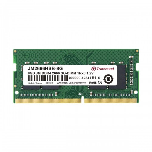 Boost your system's performance with the 8GB JetRam DDR4 2666 MHz CL19 SO-DIMM Memory Module from Transcend. Delivering speeds up to 2666 MHz, this single-rank 512Mx8 DRAM module is a plug-and-play memory upgrade designed to improve your computer's start-up times, overall responsiveness, and ability to handle data-intensive applications. It is unbuffered, features a CAS latency of CL19, and works on systems with a 260-pin SO-DIMM slot and a DDR4-enabled chip. Moreover, the module's nominal voltage rating of only 1.2V not only ensures cooler operation but also reduces the electrical load on the memory controller for power savings of up to 40% versus standard 1.5V memory modules.