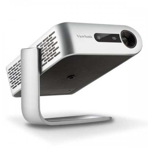 The ViewSonic M1, iF award-winning, is an ultra-portable LED projector that delivers convenient entertainment in nearly any room. With a built-in battery, up to 30,000 hours of LED light source life time, this projector will deliver years of multimedia entertainment wherever it goes. Weighing less than two pounds, the M1’s compact and lightweight design makes it ideal for moving from room to room, or for indoor/outdoor usage. An integrated smart stand provides for simple 360-degree setup, while also doubling as a lens cover. Once the lens is uncovered, the projector automatically powers on with full brightness for instant entertainment. The lens also features a safety auto-off feature that powers down the projector when objects are detected too close to the lens. Dual Harman Kardon speakers provide crisp and clear sound for multimedia content, while a short throw lens can display large images in small spaces. What’s more, versatile connectivity options include a MicroSD card slot, USB Type-A, USB Typ-C, and built-in 16GB memory – making the M1 a great option for sharing and displaying videos and other multimedia content.