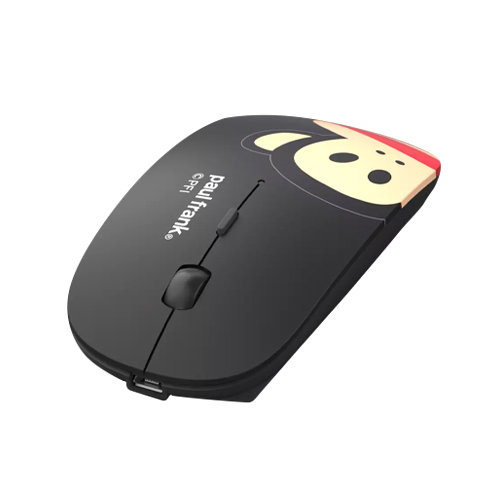 The Wiwu WM102 Paul Frank edition 2.4G Wireless Mouse features a slim ergonomic design and a smooth frosted surface for an incredible user experience. It is made of ABS material. Quieter and Easier to click, make you concentrate on your work without disturbing others beside you. It comes with a tiny wireless receiver conveniently slots into your computer's USB port, taking up minimal space. The 2.4 GHz wireless mouse provides a powerful, reliable connection, effective up to 15 meters of range. This mouse will auto sleep after 8 minutes of inactivity for power saving, it can be waken up by clicking any button. It is powered by a rechargeable battery with 450mAh, which can work 50 hours with a full charge. It has no warranty.