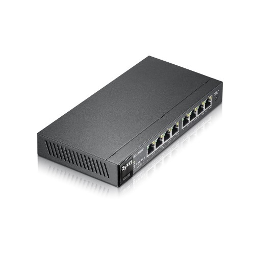 The Zyxel GS1100 Series is the best solution for instant Gigabit connectivity in office environments demanding silent operation and better energy efficiency. With power-saving functions, Gigabit Ethernet, and a fanless design, the GS1100 Series provides plug-and-play simplicity for high-bandwidth network applications. The Zyxel GS1100 Series consists of four unmanaged switches: the GS1100-8HP, GS1100-16, GS1100-24, and GS1100-24E. The GS1100-16 and GS1100-24E feature 16 and 24 GbE ports. The GS1100-24 is a 24-port Gigabit switch with 2 additional open Gigabit SFP slots, while the GS1100-8HP is an 8-port Gigabit switch that complies with the IEEE 802.3at Power over Ethernet (PoE) Plus standard, providing 4 PoE ports with up to 30 watts per port. The GS1100 Series not only offers Gigabit Ethernet connectivity for next-generation network applications but also power-saving functions for better energy efficiency. Capable of dynamically adjusting power output according to traffic, active links, and cable length, the GS1100 Series can reduce energy consumption for lowered operating costs. The IEEE 802.3az Energy Efficient Ethernet (EEE) feature automatically detects network traffic and adjusts power consumption dynamically, enabling the switch to reduce power consumption during low link utilization periods. The GS1100 Series comes with the IEEE 802.3az on/off button to help reduce power consumption. This button allows users to keep the best performance without transmit impacted or to have green support of Energy Efficient Ethernet mode with a simple push of a button. The inactive link detection function automatically reduces power usage when inactive links or devices are detected. The Zyxel GS1100 Series can adjust power consumption according to the link status and the number of active network devices. This green feature enables the switch to automatically detect the length of connected Ethernet cables and adjust power usage accordingly. The shorter the cable length, the less power it consumes. The complete GS1100 Series comes in a fanless design that ensures silent operation in small or quiet office environments. The GS1100-8HP PoE model is specifically designed with an external power adapter that eliminates the need for an additional fan to cool down the device, making it perfect for quiet PoE deployments. The complete GS1100 Series comes in a fanless design that ensures silent operation in small or quiet office environments. The GS1100-8HP PoE model is specifically designed with an external power adapter that eliminates the need for an additional fan to cool down the device, making it perfect for quiet PoE deployments.